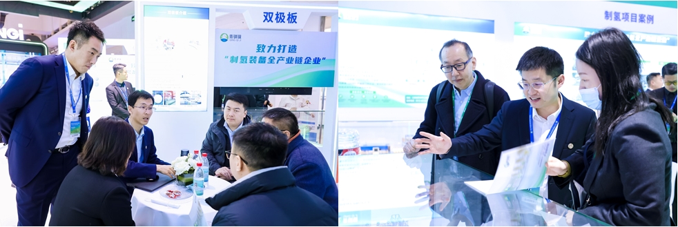 此次展会上,,,,Z6尊龙碱性电解槽制氢成套系统、、、、催化剂、、双极板系列产品集体亮相,,,致力打造“氢能装备全产业链企业”,,,,引众多国内外领导、、行业专家和参观者驻足参观,,并现场进行深入讨论交流。。。